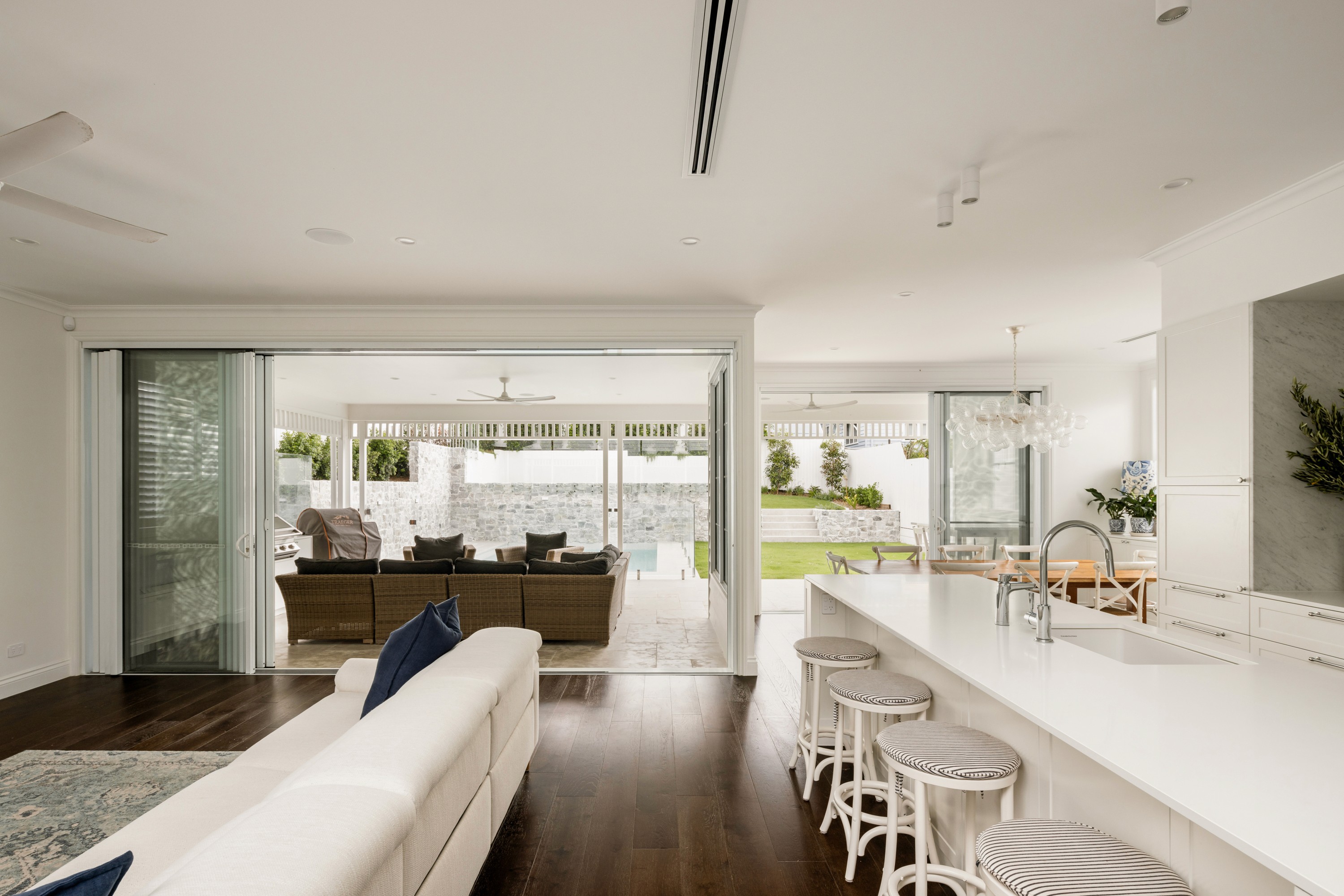 This Annie Street renovation transforms a modest Queenslander into a flexible, light-filled family home. The original two-bedroom cottage is now a five-bedroom residence with two living areas and studies. The design preserves its charm while adding flow and space, focusing on natural light, outdoor connection, and quality finishes for a timeless, liveable home.