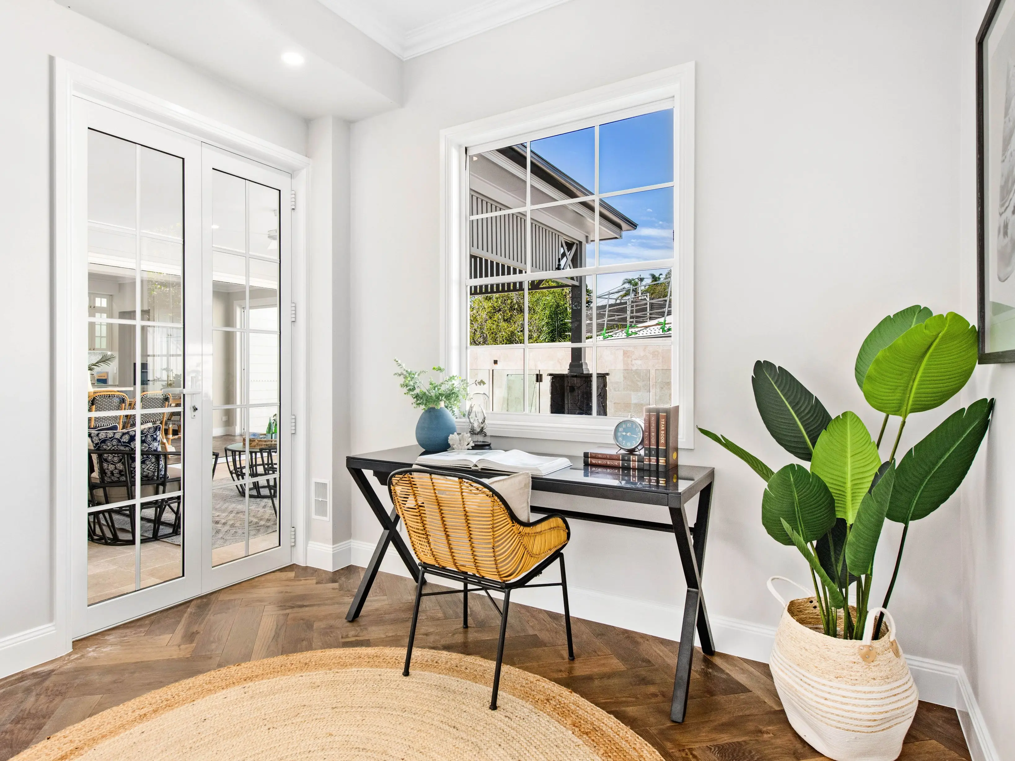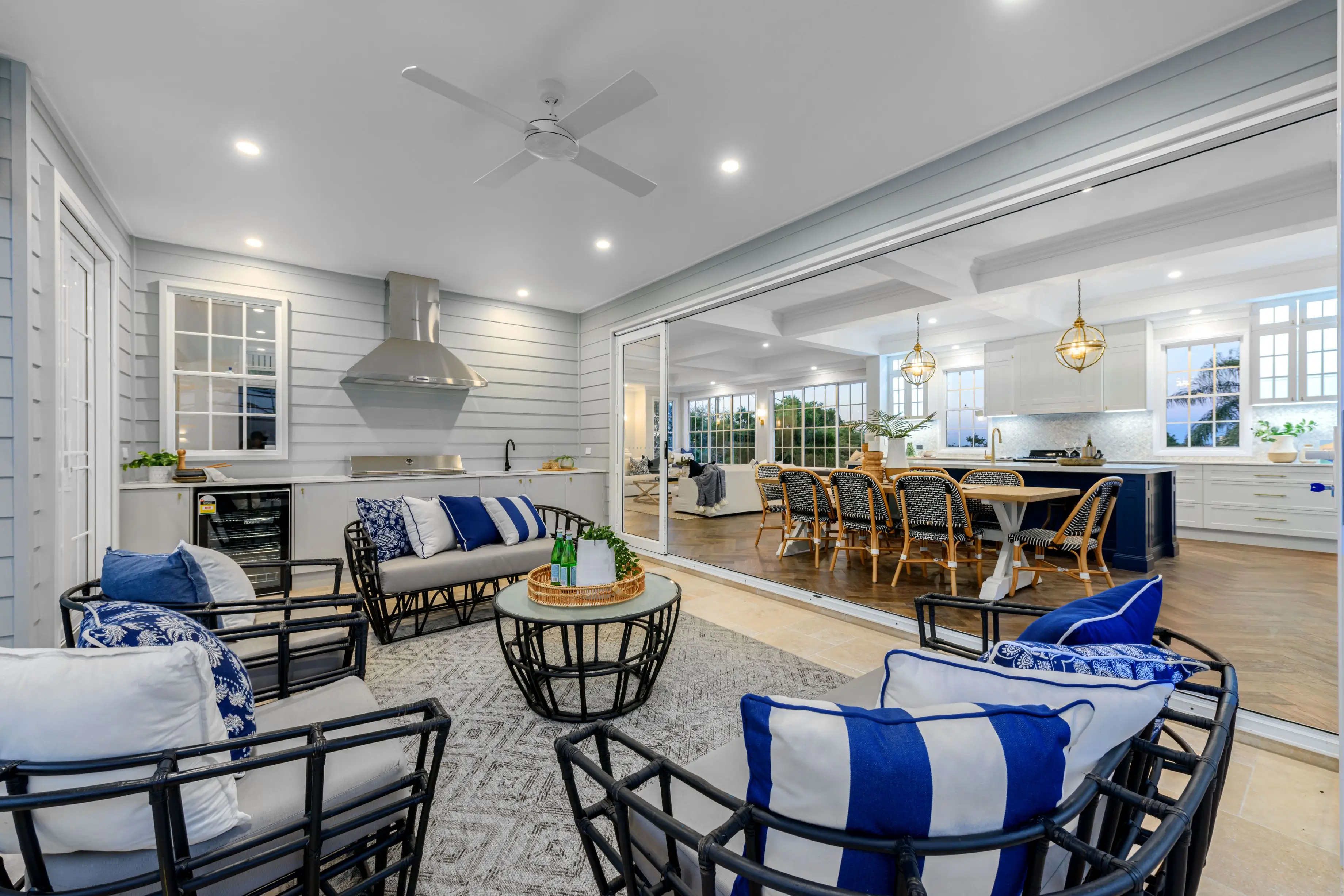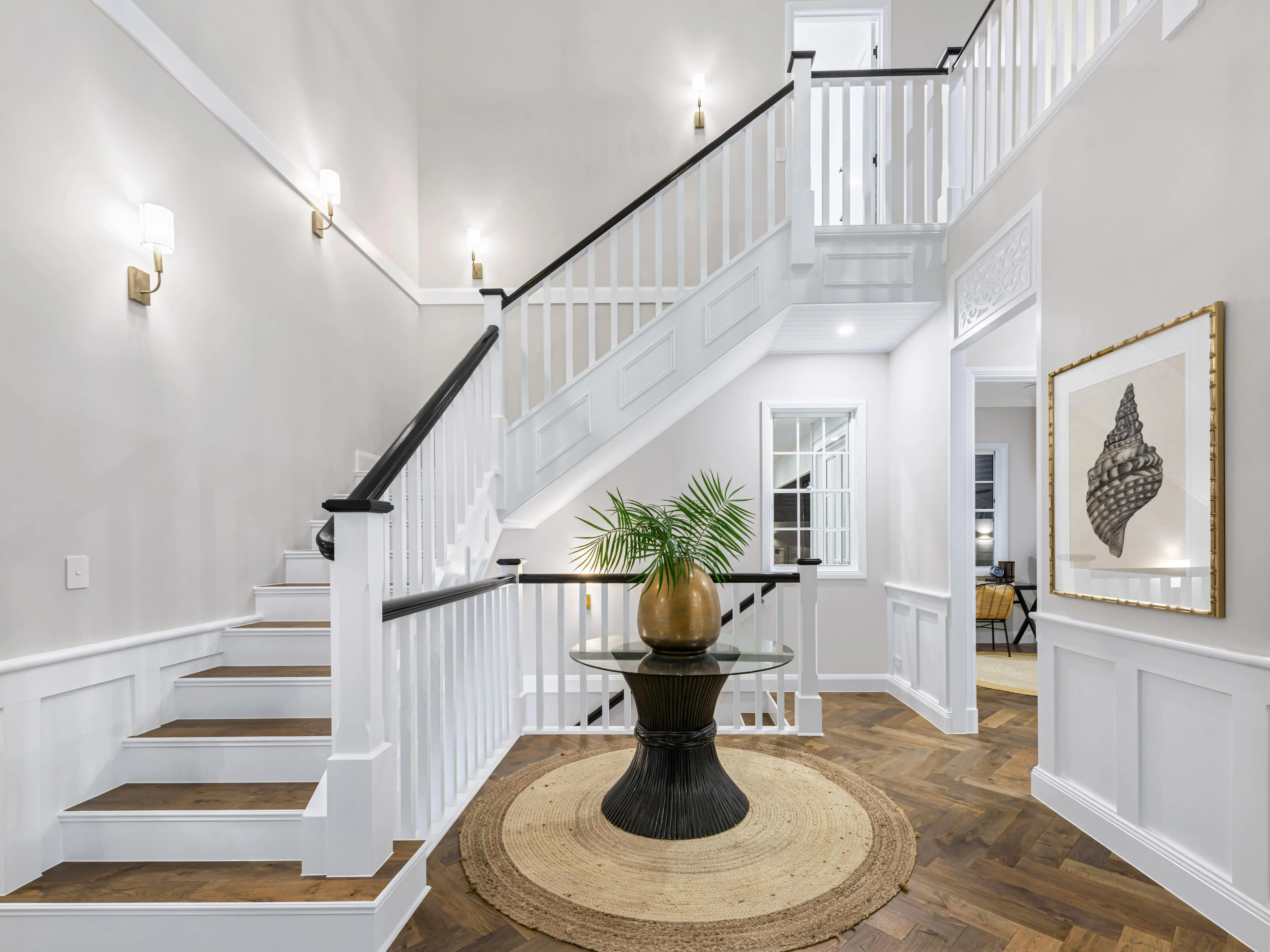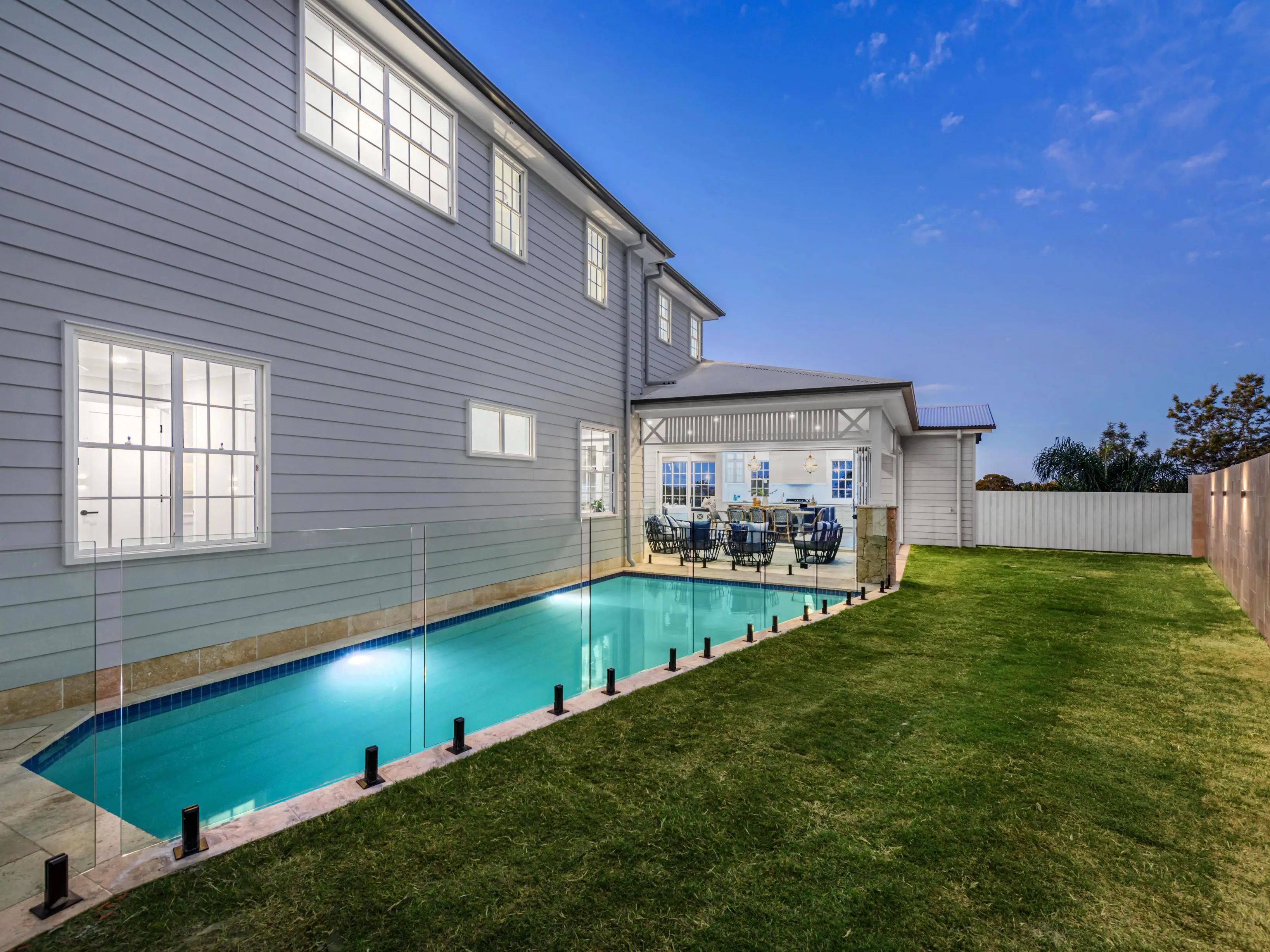 This Hamptons-inspired home on Barradine St, Greenslopes, blends timeless elegance with modern functionality. It features a striking facade, sophisticated interiors with a double-height void and oak flooring, a gourmet kitchen, and seamless indoor-outdoor living with a pool. Designed for comfort and practicality, it's a testament to elevated suburban living.
