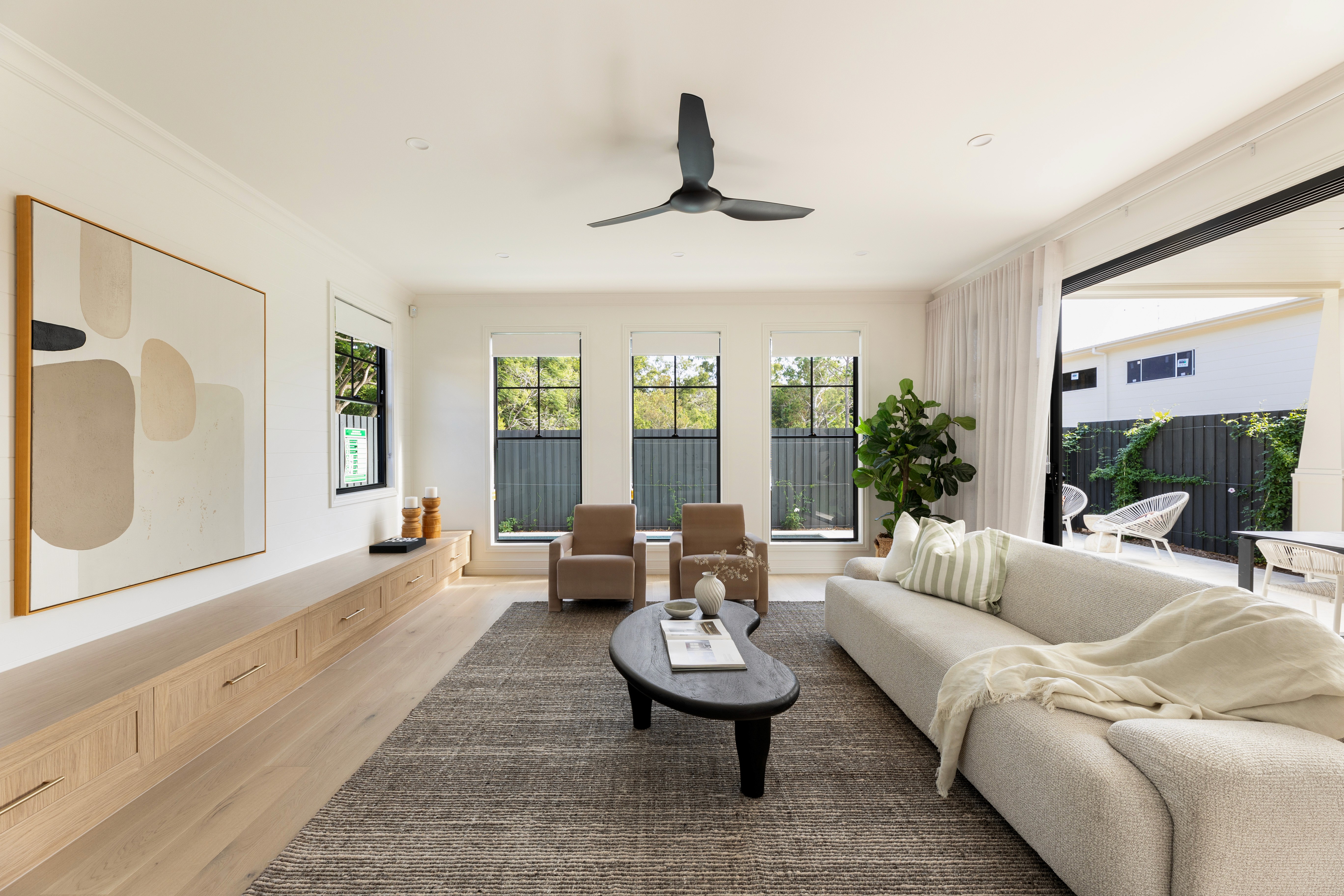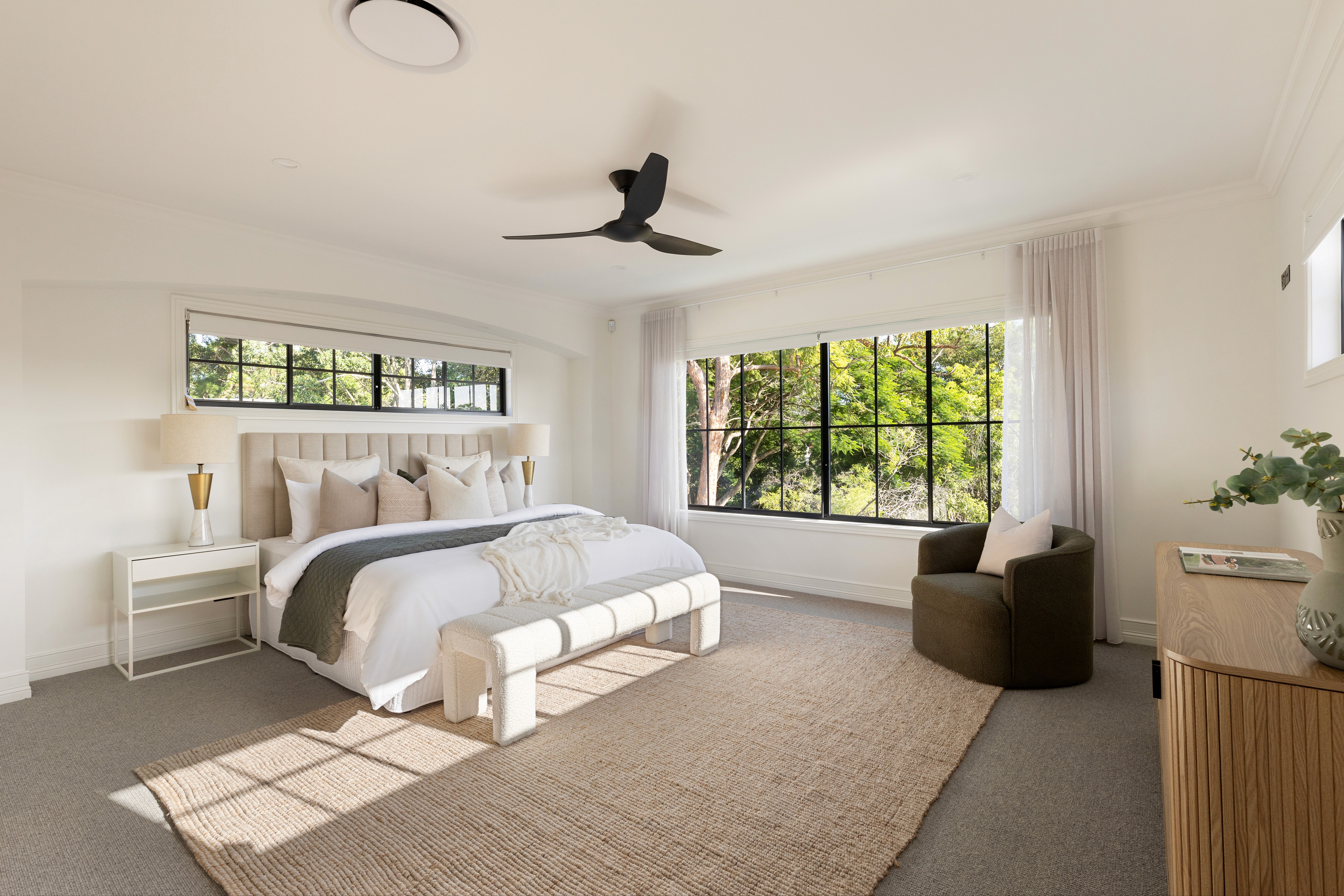 This modern farmhouse offers refined living with a strong connection to nature. Inside, discover sophisticated materials like oak and marble, 2.7-meter ceilings, and open-plan spaces flowing to an alfresco area with a BBQ and pool. Five bedrooms, a study, and practical amenities complete this elegant and comfortable home.