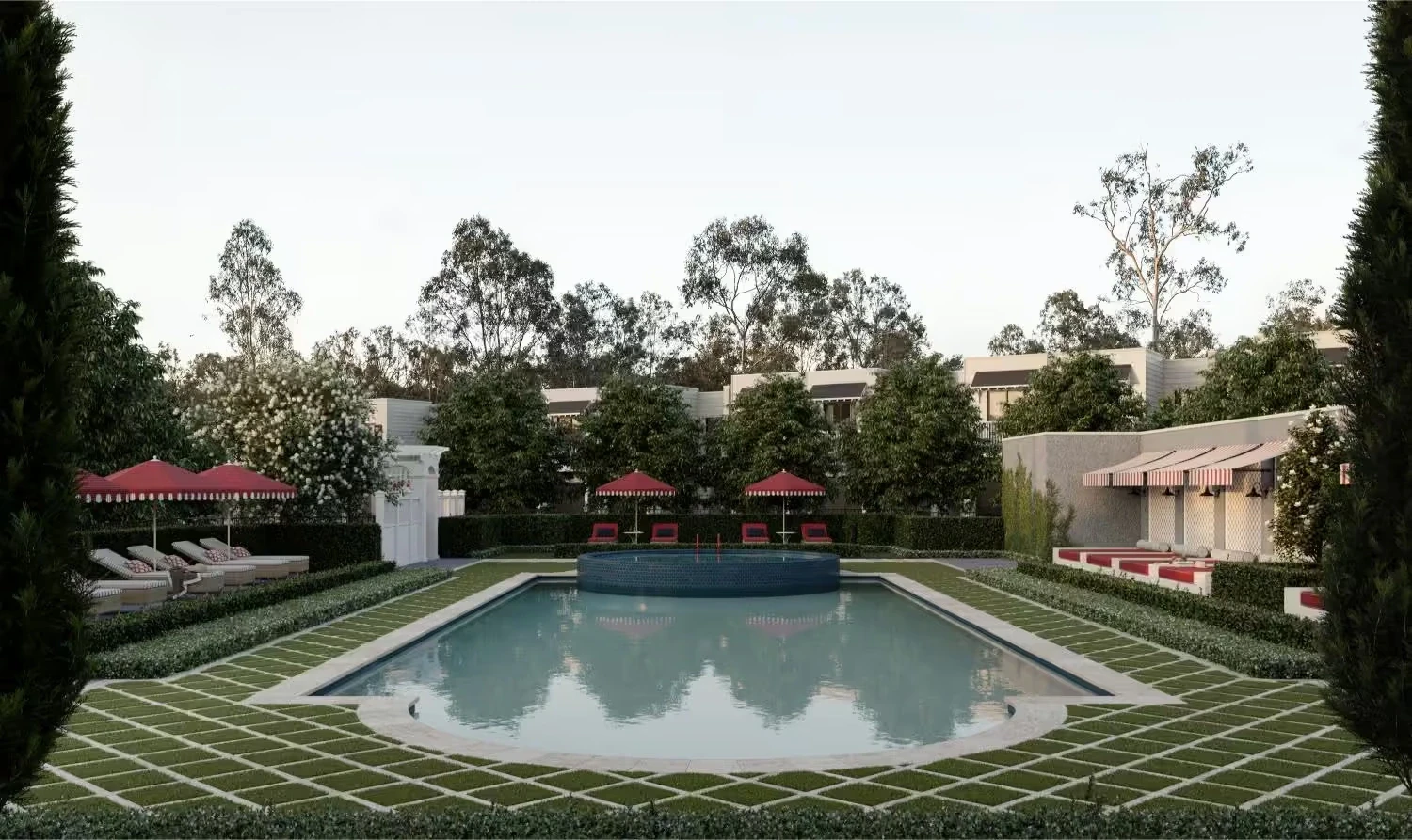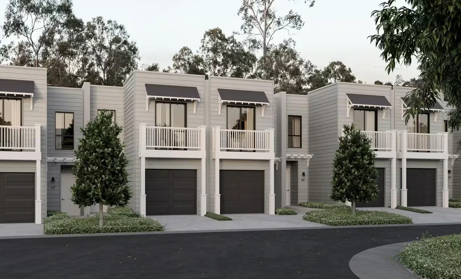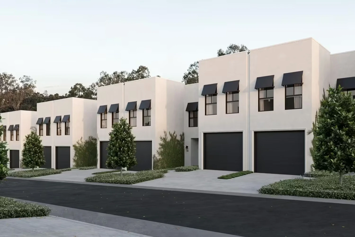 DAHLIA: 129 townhouses under construction at 10 Astral Court, Flinders View. These 3-bedroom terraces offer indoor-outdoor living, manicured gardens, and communal amenities like a 15m pool and children's splash pool. Located in a well-connected area, the homes feature refined architecture and sophisticated interiors with quality finishes.