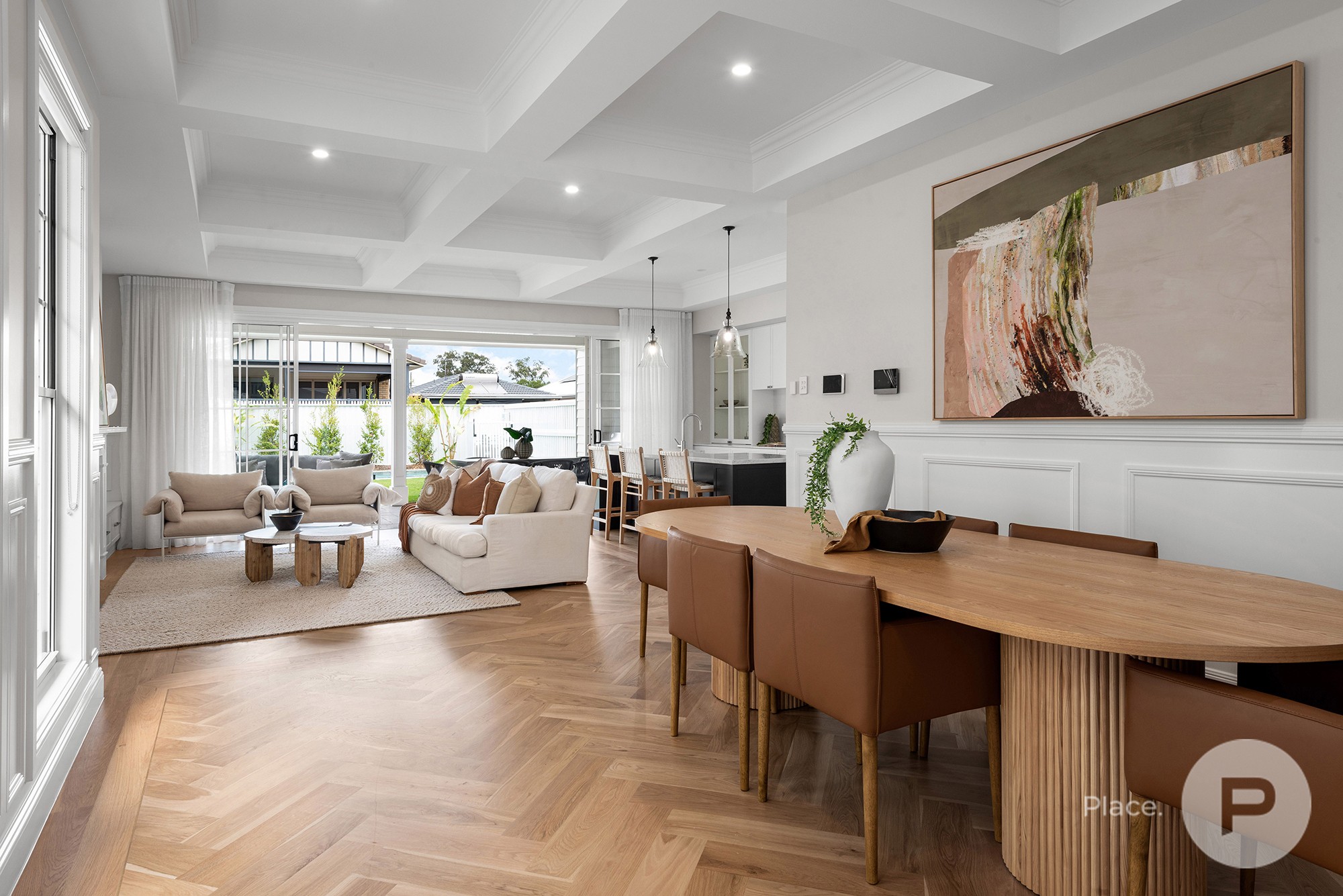 This Norman Park residence by Invilla is a luxurious home designed for modern family life, maximizing city views and a north-facing orientation. Its striking facade blends natural textures, while a grand entry with a 6.1-meter void leads to open-plan living. A gourmet kitchen, outdoor entertaining with a pool, and five bedrooms including a master suite, create a refined and practical space.