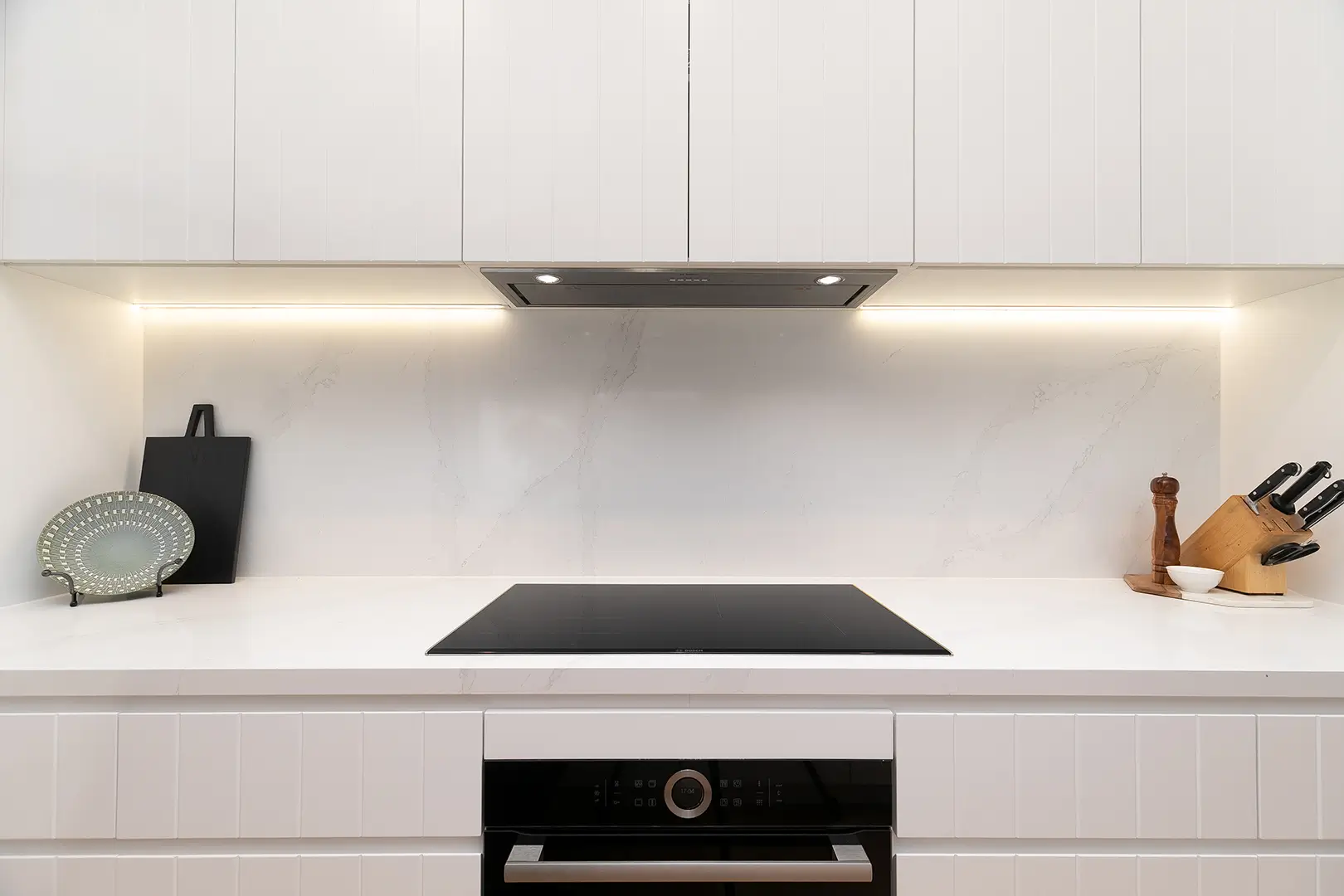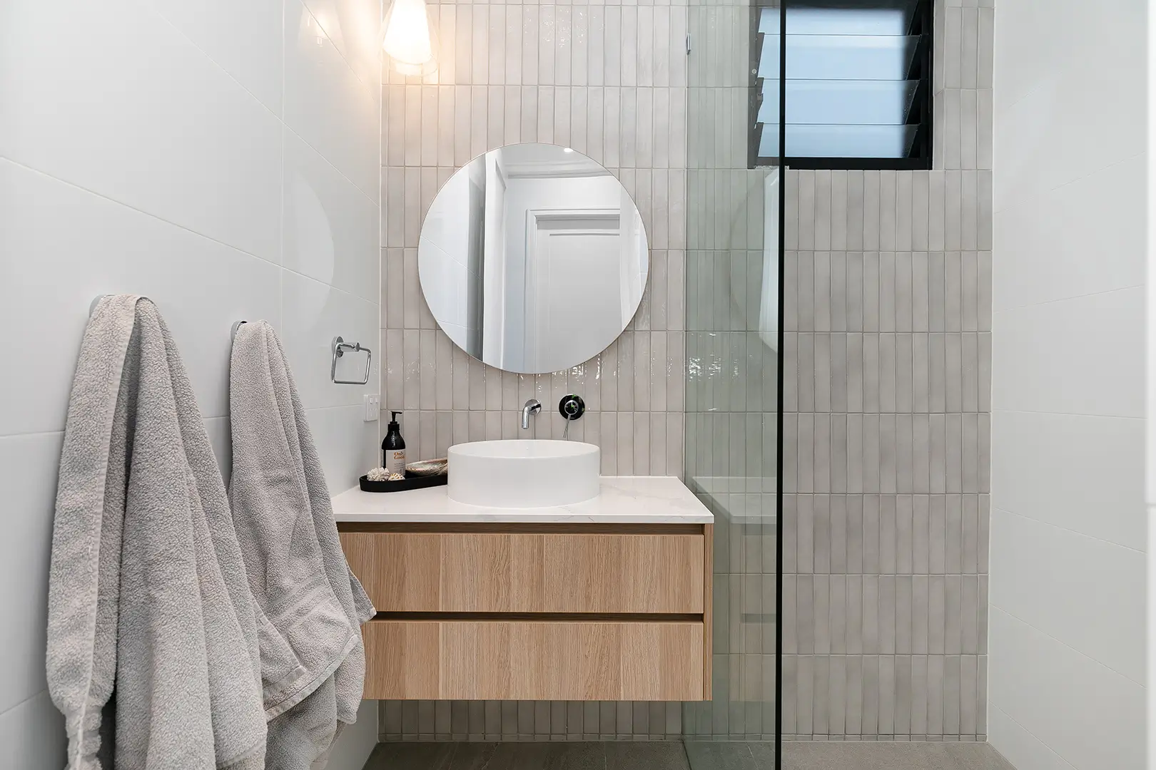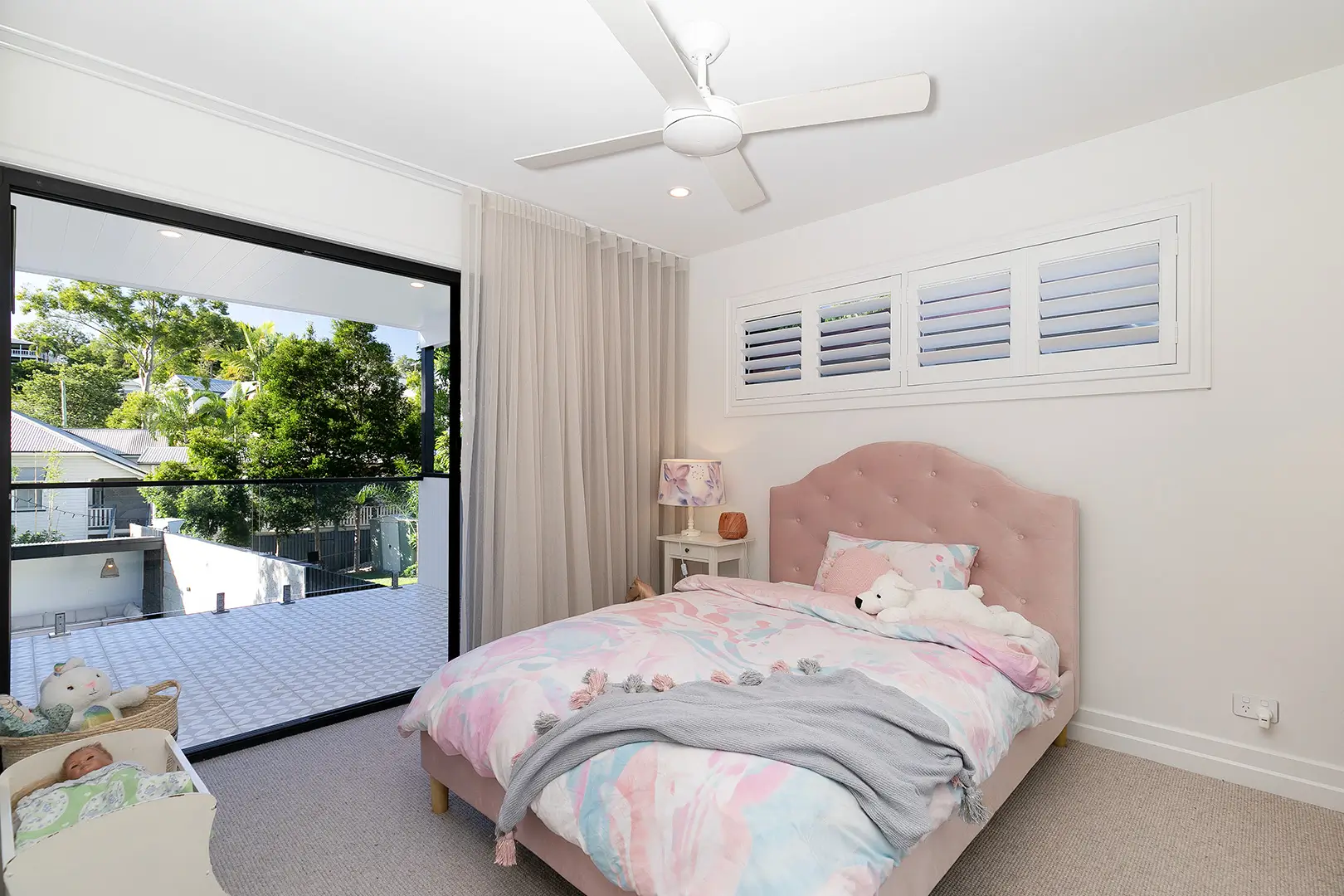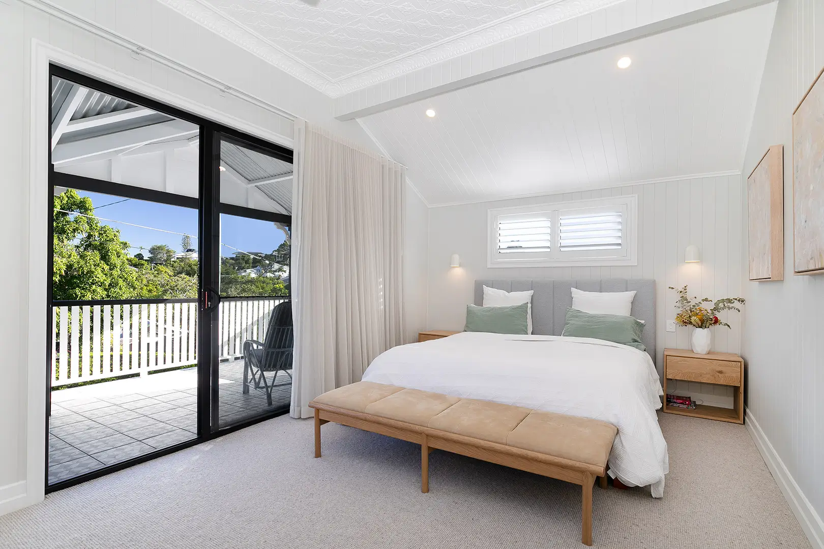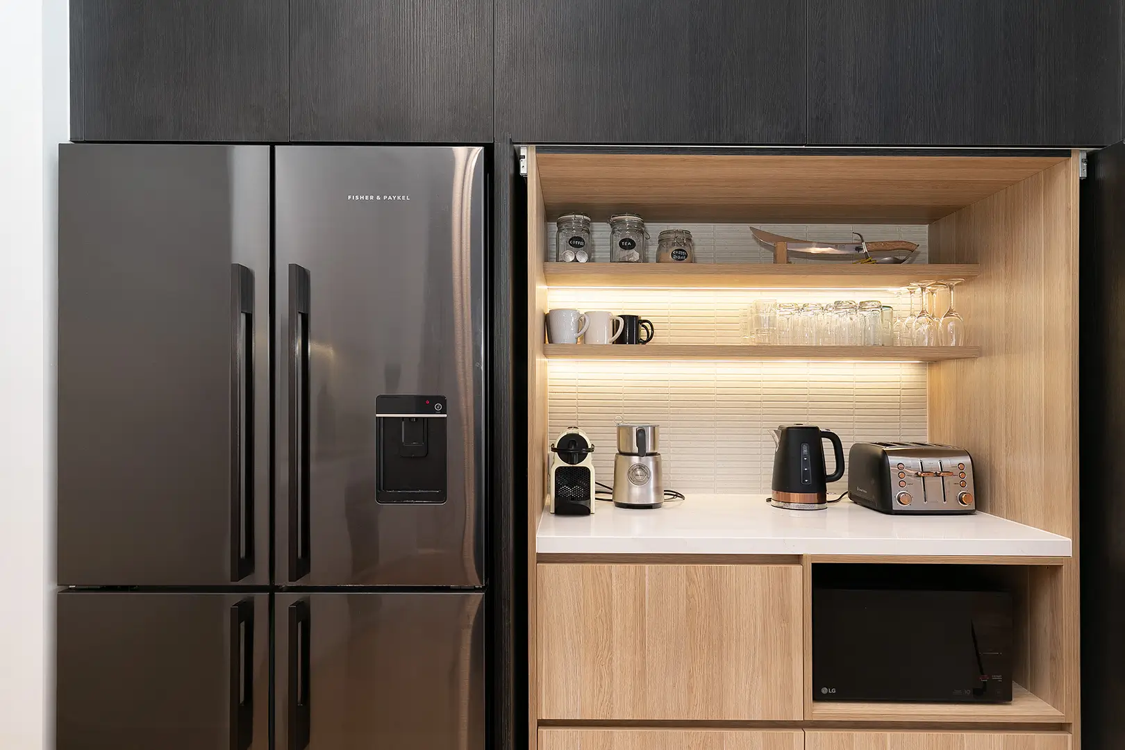 Shaw House features a sophisticated facade with timber and black tones. Inside, an airy, open-plan living area with high ceilings and large windows flows into a modern kitchen with high-end appliances. Polished timber floors and seamless indoor-outdoor connections define this elegant, functional home, complete with an upstairs family room, luxurious master suite, and an outdoor entertainment area.
