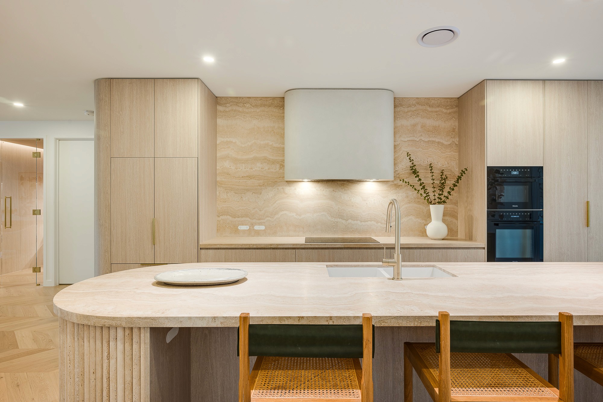 Alto welcomes you with clean lines and a sculptural staircase. The open-plan kitchen boasts custom cabinetry and marble countertops. Every detail, from the office to the wine cellar, enhances personalized living. The master suite features a spa-like bathroom. Seamless indoor-outdoor flow to a built-in kitchen and plunge pool suits the Queensland lifestyle.