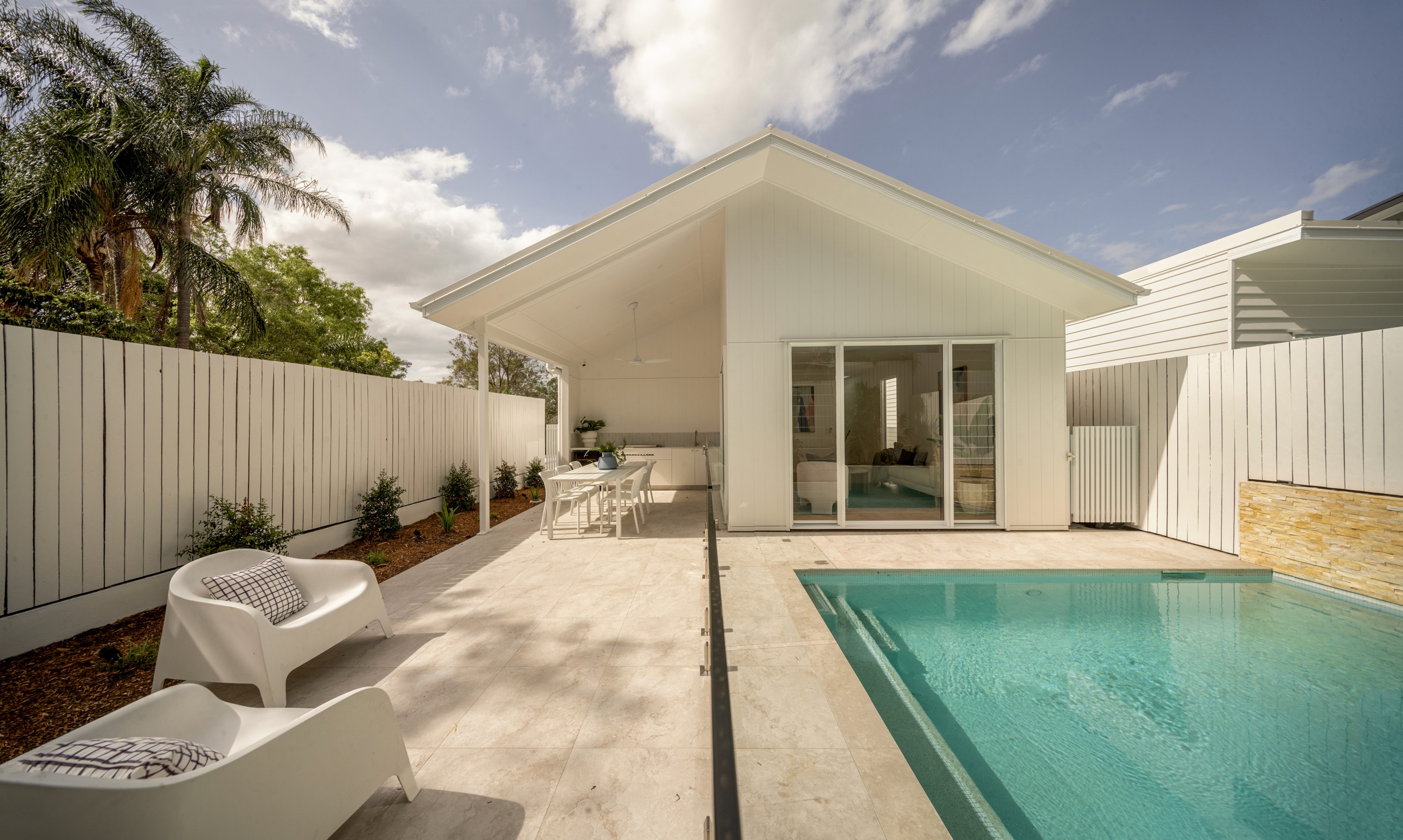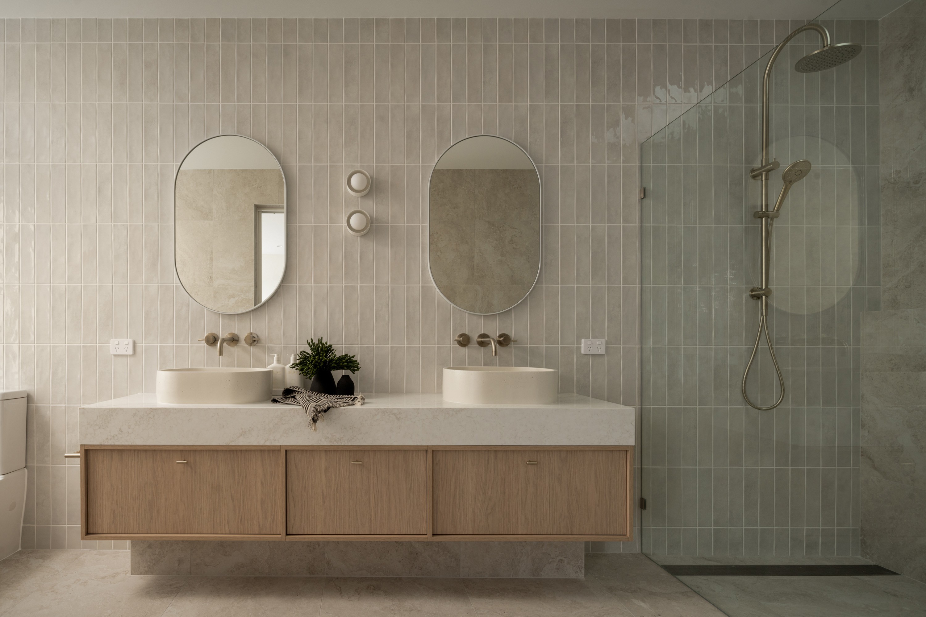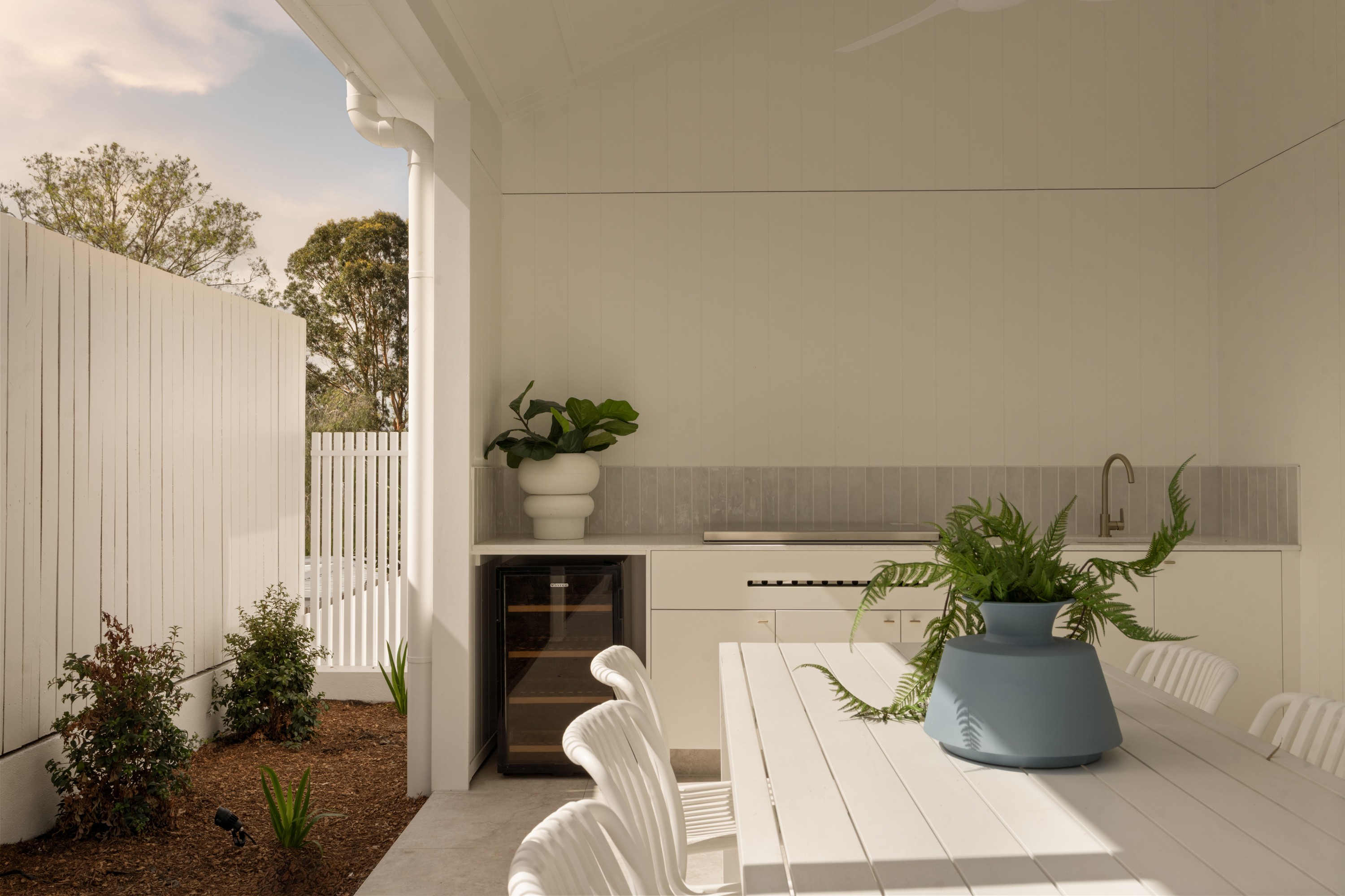 Set on a tree-lined Toowong hillside, this residence uses its northern orientation, layered levels and light-focused material palette to open the home to its landscape. The mid-level forms the social heart, where the kitchen, living and dining connect to the balcony and surrounding canopy, with practical spaces sitting quietly behind the scenes. A second living space above leads to an alfresco terrace and pool, a setting shaped for Brisbane’s climate and everyday gathering. Five bedrooms and three skylit bathrooms occupy the upper level, with the primary suite positioned to meet the treetops each morning.