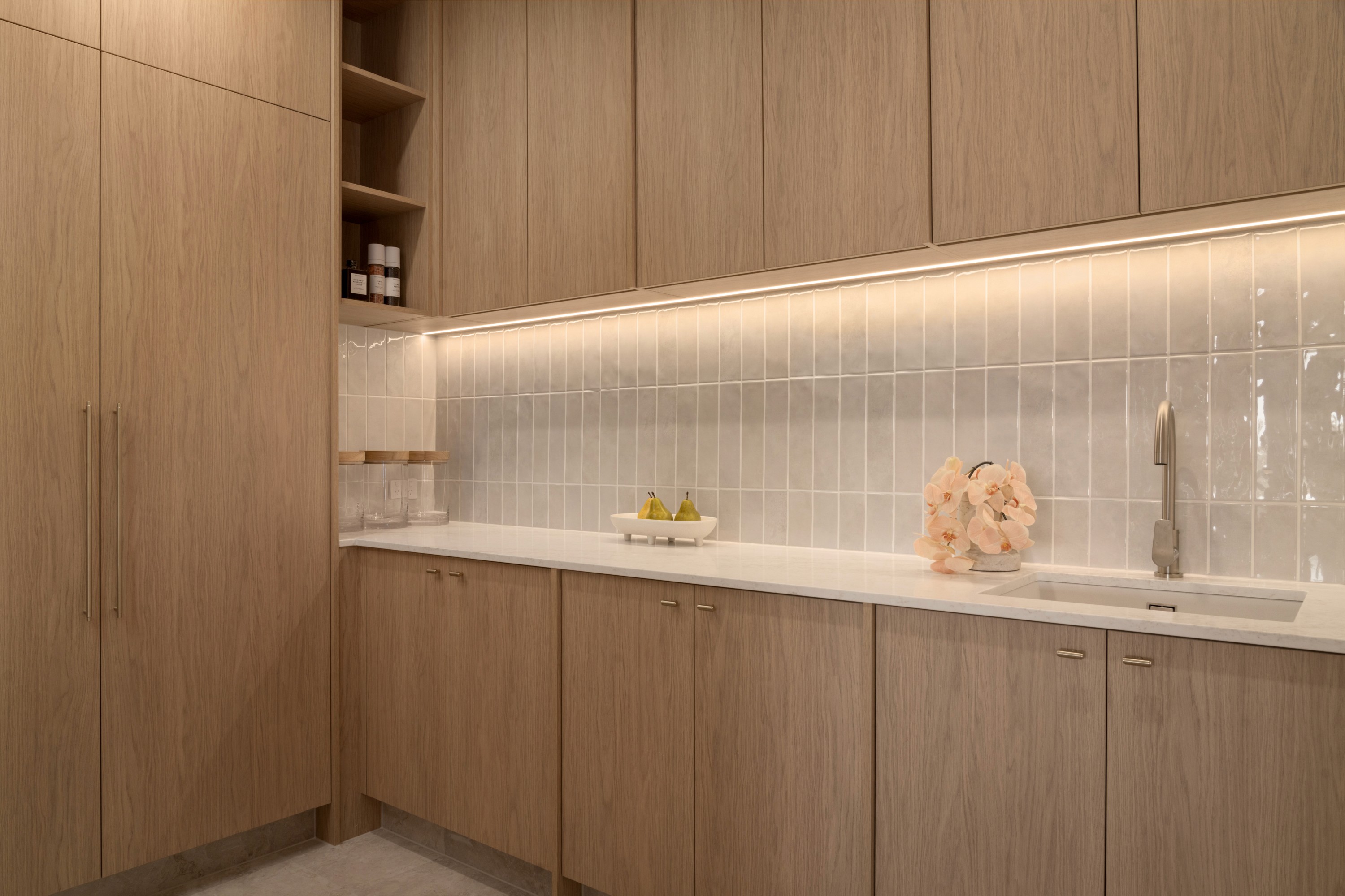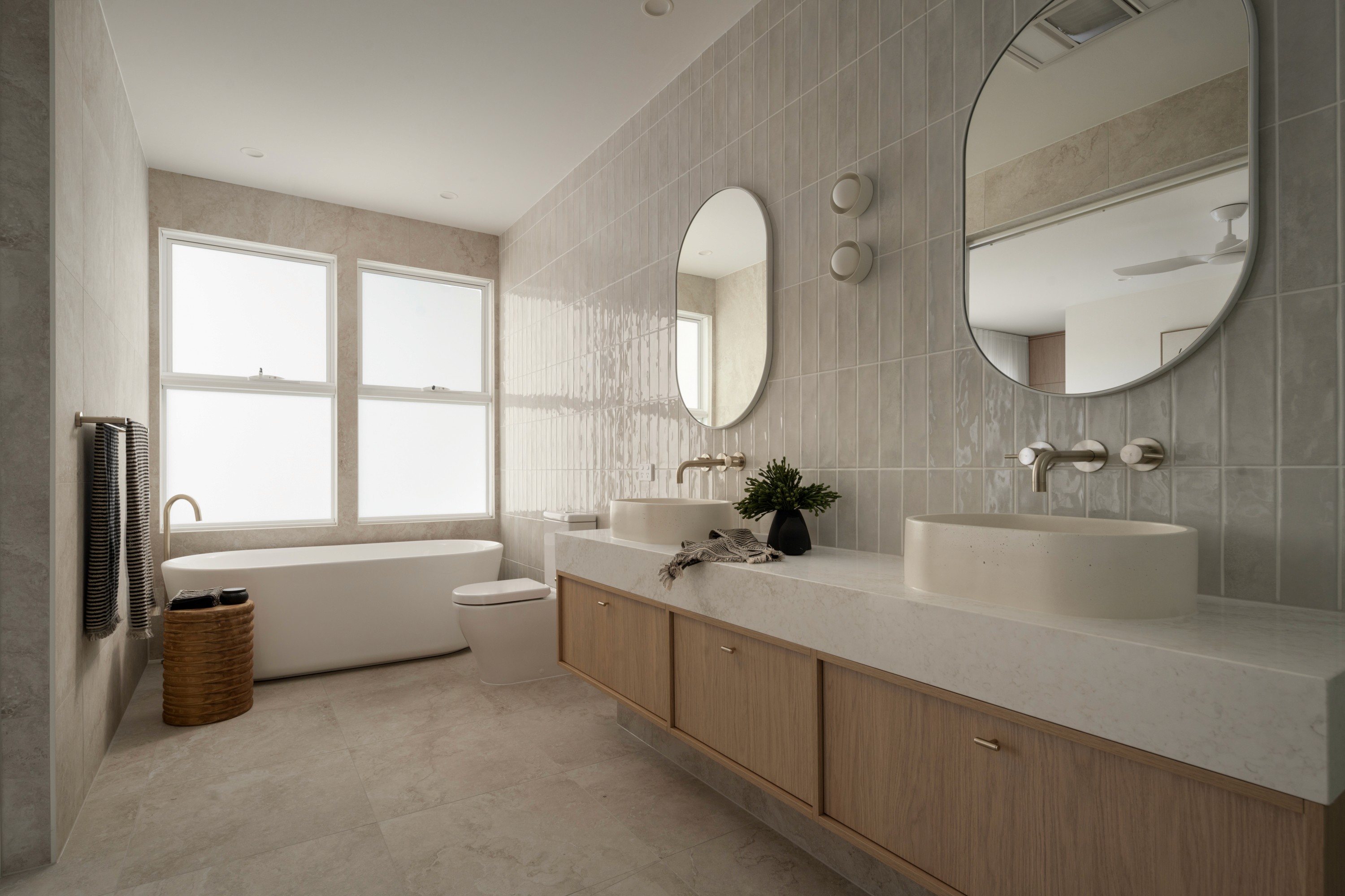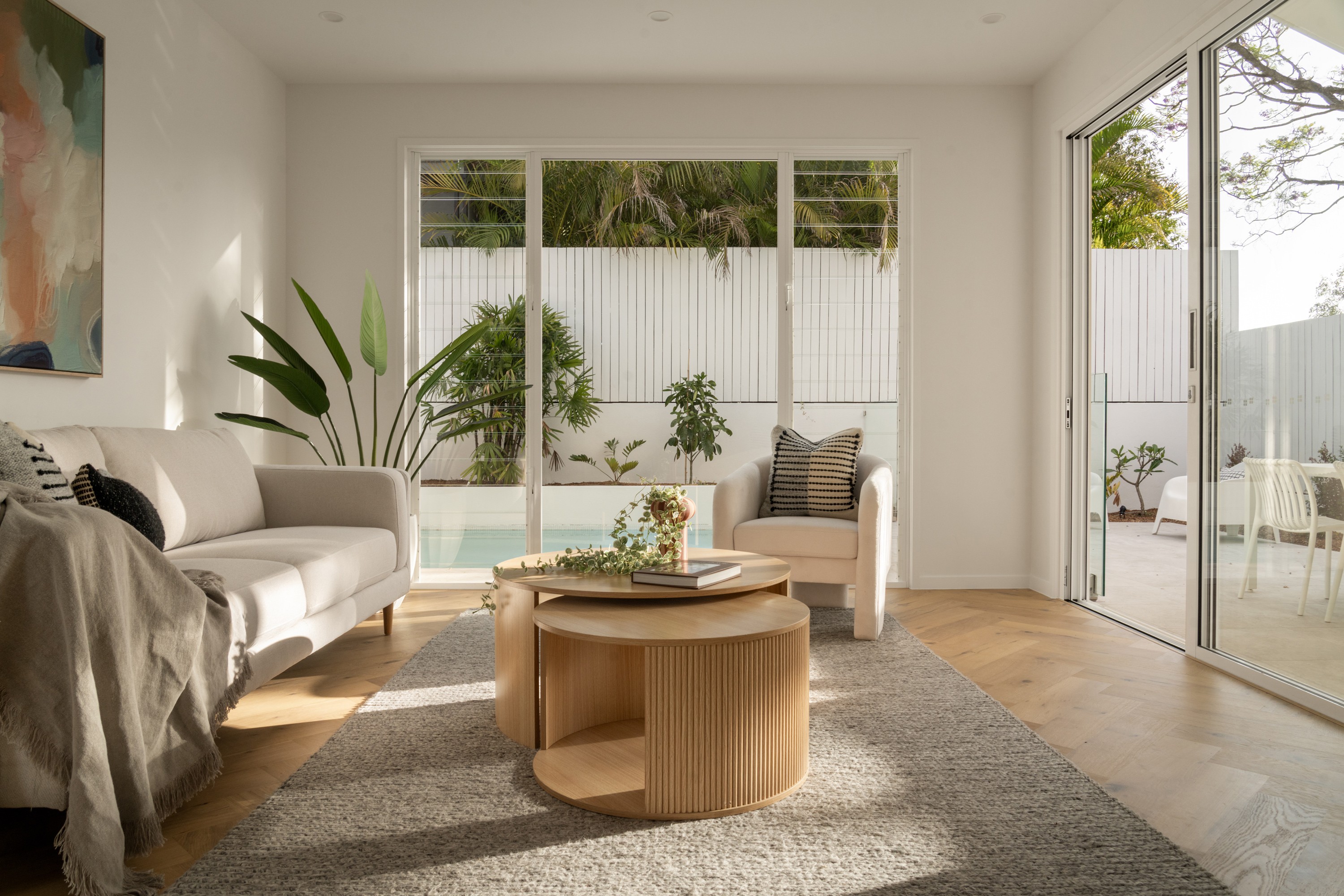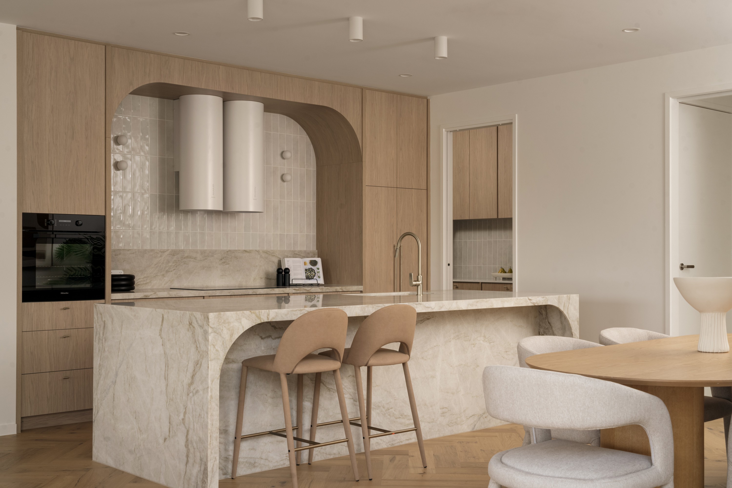 Set on a tree-lined Toowong hillside, this residence uses its northern orientation, layered levels and light-focused material palette to open the home to its landscape. The mid-level forms the social heart, where the kitchen, living and dining connect to the balcony and surrounding canopy, with practical spaces sitting quietly behind the scenes. A second living space above leads to an alfresco terrace and pool, a setting shaped for Brisbane’s climate and everyday gathering. Five bedrooms and three skylit bathrooms occupy the upper level, with the primary suite positioned to meet the treetops each morning.