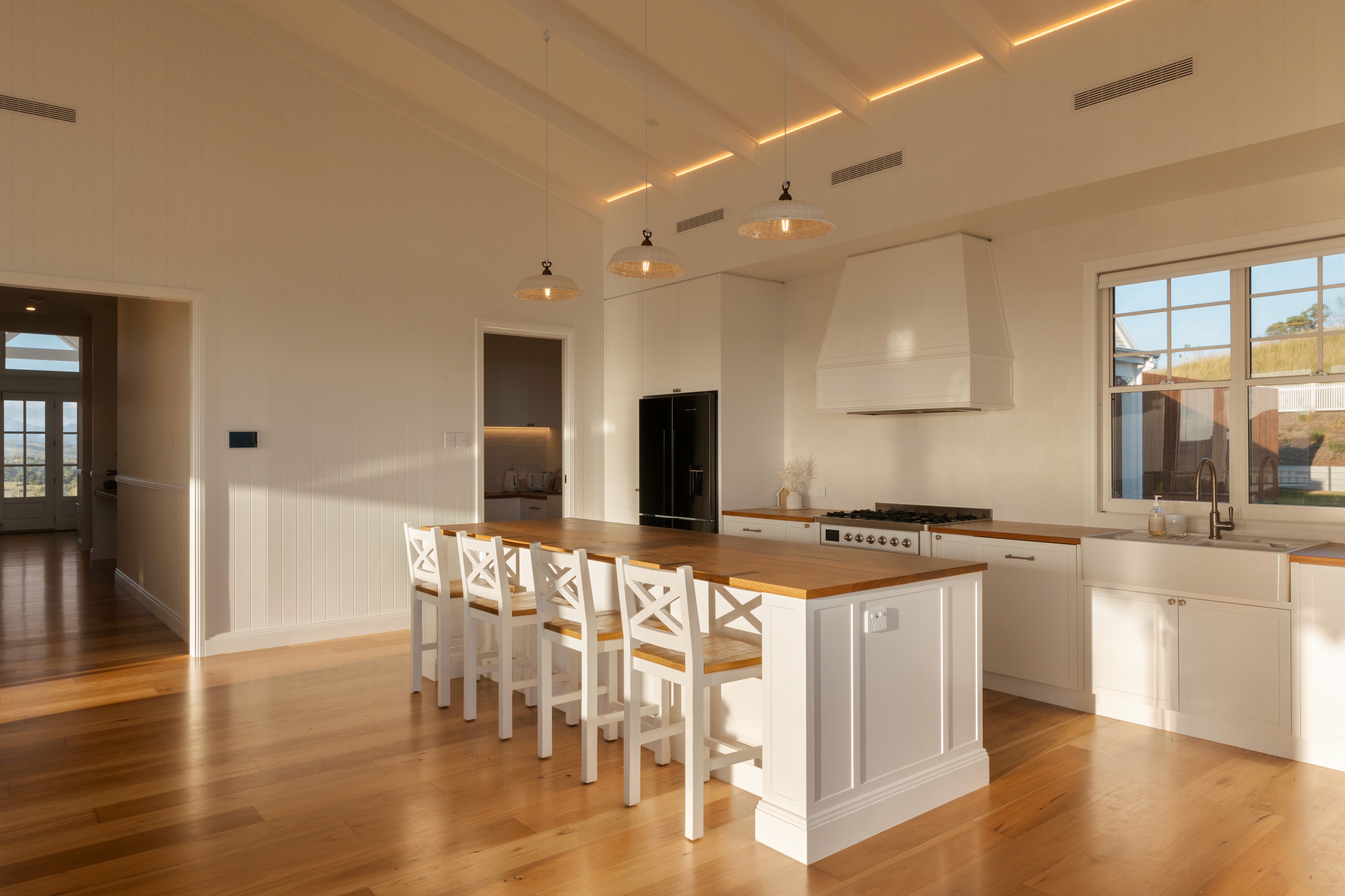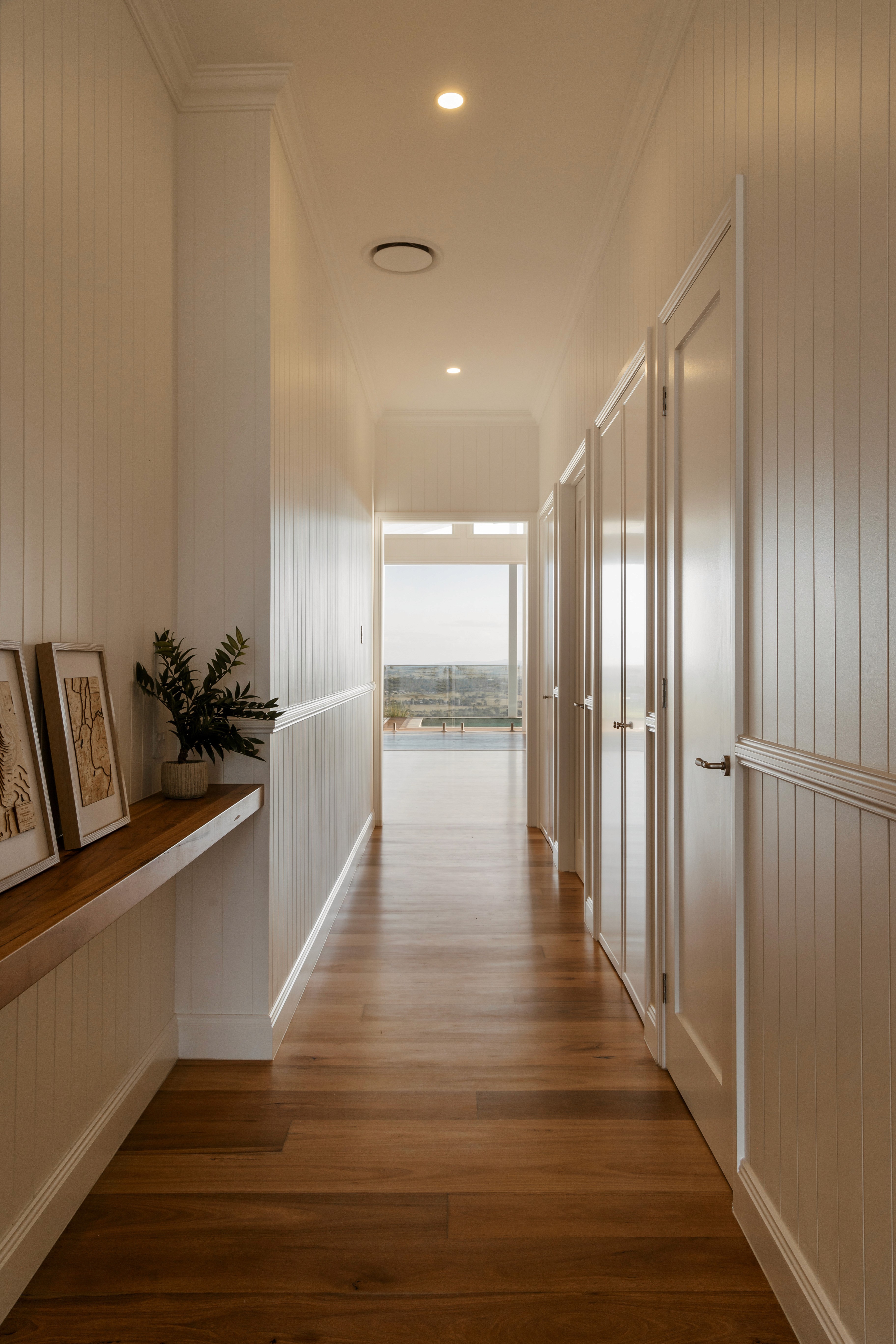 Illalangi, nestled in the Scenic Rim, embraces its natural surroundings with expansive windows offering uninterrupted views and flooding interiors with light. A modern form softened by warm materials, its open-plan living flows outdoors, creating a functional, beautiful home for retreat and connection. It's a place to pause and feel truly at home.